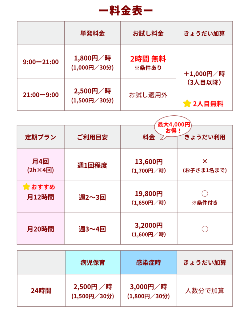 訪問型ベビーシッターです。外出先でも対応可能です。